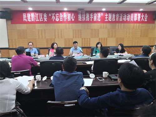 孙天明结合黔江民建实际,对如何开展主题教育活动进行了安排部署:一是强化领导。成立以主委孙天明为组长,副主委舒昌荣、郭江涛、黄霞、张健为副组长的主题教育活动领导小组,加强对主题教育活动的领导和指导,并把主题教育活动开展情况纳入今年支部综合考核的重要内容。二是明确目标。引导推动全区会员按照“四新”、“三好”的总要求,深刻学习领会习近平总书记关于多党合作的重要论述,传承弘扬民建长期以来同中国共产党风雨同舟、休戚与共的优良传统。推进自身建设,全面加强思想政治建设、组织建设、履职能力建设、作风建设和制度建设。三是突出重点。区委会和各支部要将学习教育、能力提升、履职尽责、查找不足、整改提高贯穿主题教育活动全过程,不断提升主题教育活动的政治性、时代性、针对性和实效性。广泛听取意见,找出自身不足,找准工作短板,深刻检视剖析,明确努力方向,列出清单、深入研究、逐项整改。四是注重宣传。充分发挥会刊、网站和微信公众号等会内宣传平台的作用,加强与主流新闻媒体的沟通协调,广泛宣传主题教育活动中涌现出来的成功经验和先进事迹,努力营造浓厚氛围,积极扩大社会影响。各支部要把开展主题教育活动情况及时报送区委会办公室。区委会根据各支部开展的情况在《黔江民建》上刊发,并及时上报民建市委主题教育活动办公室。