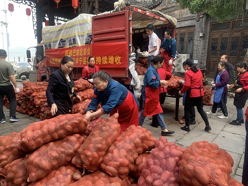 “还有谁需要大量土豆呢?”谭恒敏接到曹会计的电话后犯了难。但她随即联想到购买量大的会员都是餐饮业主,巴南有那么多餐馆,一定能够消费不少土豆。于是,她马上联系巴南区餐饮住宿业商会,恳请他们帮忙在商会群里“打广告”,吆喝推销下洼子村的红皮土豆。餐饮商会的企业主们也是一呼百应,踊跃接龙购买。很快,餐饮商会就反馈了他们订单量——7000多斤!