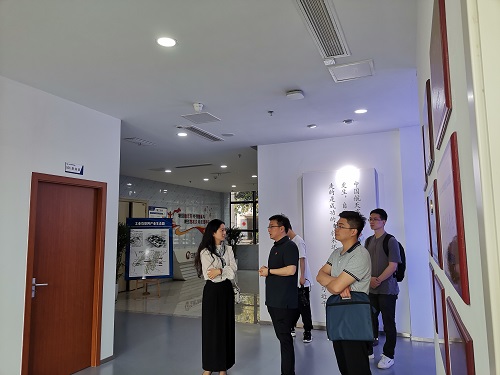 在蔡家管委会和相关公司有关负责人陪同下,课题组成员先后参观了三家公司的产品陈列厅、研发机构、生产现场和企业文化展示区??翁庾槌稍币槐呷险媪私庀喙厍榭?,一边与公司陪同人员进行交流沟通。