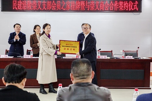 3月24日下午,民建涪陵区崇义支部会员之家授牌暨与崇义商会合作签约仪式在涪陵区崇义街道办事处举行。民建涪陵区委会主委陈圣玲出席会议并讲话,崇义街道党工委书记郑义柳、崇义街道党工委委员、宣传统战委员杜莉,崇义商会会长李平,副会长吴杰、郎成伟、许杰应邀参会指导;民建涪陵区委会副主委贺付琴、专职副主委黄鲁,四级调研员刘家学,民建涪陵区委委员张健、李健、陈俊豪及42名会员参加本次活动。民建涪陵区委委员、崇义支部主委杜银泉主持会议。