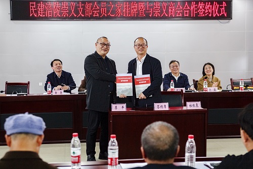 会上学习了今年全国两会精神。杜银泉汇报了民建崇义支部历史沿革及会员之家建设情况;李平介绍了崇义商会的基本情况。陈圣玲代表民建涪陵区委会向崇义支部授予会员之家牌匾,杜银泉与李平签订了民建崇义支部与崇义商会合力助推崇义街道经济社会发展备忘录。
